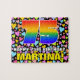 Este design de quebra-cabeça de jigsóvia, de aniversário colorido e atraente, apresenta um grande número "75" com um padrão de gradação inspirado no espectro multicolorido do arco-íris. Ele também apresenta a mensagem "FELIZ 75º ANIVERSÁRIO" e um nome de destinatário editável. O fundo apresenta um padrão otimista de corações amorosos com vários tamanhos e cores. Um quebra-cabeça de aniversário divertido e personalizado como este pode ser dado em comemoração do setenta e cinco anos de alguém. [~Z0000611]