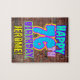 Este design de aniversário divertido apresenta a mensagem "FELIZ 76º ANIVERSÁRIO", tendo uma aparência vibrante, colorida, de grafite e arte urbana de rua inspirada, além de um nome de destinatário editável. O plano de fundo apresenta um padrão inspirado na parede do tijolo. Um quebra-cabeça de aniversário divertido e personalizado como este pode ser usado para reconhecer o setenta e seis anos de alguém. [~Z0000532]