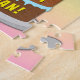 this colorful and joyful birthday-themed jigsaw puzzle design features a cartoon-style depiction of a three-tier birthday cake having numeral-shaped candles on top showing the number “81“, along with the message “HAPPY 81ST BIRTHDAY,”, and a personalized recipient name. The background has a multicolored pastel rainbow spectrum inspired gradient pattern. An upbeat, customized birthday puzzle like this might be a fun way to send a birthday greeting message to somebody who is celebrating their eighty-first birthday. [~Z0000621]