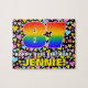 Este design de quebra-cabeça de quebra-cabeça ousado e colorido apresenta um grande número "87" com um padrão de gradação inspirado no espectro multicolorido do arco-íris, juntamente com a mensagem "FELIZ 87.º ANIVERSÁRIO", e um nome de destinatário personalizado. O fundo apresenta um padrão alegre de formas cardíacas amorosas com várias cores e tamanhos. Um quebra-cabeça de aniversário divertido e personalizado como este pode ser uma maneira divertida de enviar desejos de aniversário a alguém que está celebrando seu oitenta e sétimo aniversário. [~Z0000611]
