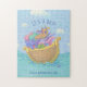 Este quebra-cabeça de quebra-cabeça mostra a Arca de Noah com animais em um fundo azul para você personalizar com um nome. Projetado pelo famoso artista mundial Tim Coffey.