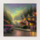 Belo quebra-cabeça de arte digital renderizada pela AI apresenta uma paisagem encantadora com um convite para o Bed & Breakfast ao redor de arbustos, árvores e flores coloridos.