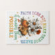 Design cor e agradável com uma cena de outono/outono com abóboras e flores de outono. O texto colorido da inspiração diz: "A fé não facilita as coisas que as torna possíveis". Esse design está disponível em uma grande variedade de produtos.