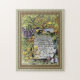 vintage pintando uma bíblia cristã citando "a fruta do espírito, amor, alegria, paz, longo sofrimento, gentileza, bondade. fé, mesquinhez, temperança: contra isso não há lei" gal-v 22, 23 com flores amarelas, flores mauve, flores rosa e roxas, e uma borboleta roxa cercada por folhas verdes com uma rolha ou Pergaminho no centro com uma citação da bíblia.