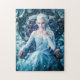 A cena majestosa da rainha da neve sentada no seu trono gelado, cercada pelo frio do inverno. Captura o poder e a beleza desta régua de conto de fadas de vinho.