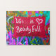 Quebra-cabeça relaxada - Esta foto de Grafite real exclusiva mostra um texto branco em um retângulo vermelho "A vida é o Cheio de beleza" em um Muro de Grafite colorido. É uma peça alegre de Arte de Rua.