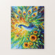 Quebra-cabeça Abstrato Pavão com girassóis em pintura