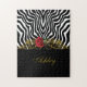 Quebra-cabeça Abstrato Zebra Flor Vermelho Negro Branco Dourado