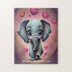 Cinza Baby Elephant with Pink Hearts - - Adicione sua própria mensagem ou vazio para excluir a linha
