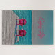 Adirondack preside olhando o lago em uma doca de madeira. Perfeito para aqueles que apreciam a vida e relaxam. Algodão perto da casa do lago no verão. Desfrute da citação da Vida. Trendy, chic, moderno, praia, cabana rustica jogo de quebra-cabeça de 1014. Teal, cor-de-rosa turquesa, cores. Você pode clicar em "personalizar mais" para alterar o tamanho da imagem para o ajustado se decidir alterar o tamanho. Imagem copyright Marg Seregelyi Fotografia.