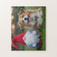 Quebra-cabeça Adorable Plush Gnome and Fluffy Dog Lying in Grass