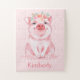 Quebra-cabeça Adorable Watercolor Pink Pig with Name