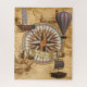 Crie sua colagem estilo Steampunk. Navio voador retrofuturista, jangada anacrônica de madeira e balão neovitoriano de ar quente decoram um rosa de bússola vintage sobre um mapa mundial antigo com ilustrações de transporte. Substitua o texto de exemplo no banner do ouro por um presente personalizado. Faz um presente maravilhoso para qualquer um que desfruta de viagem, aventura, estética Steampunk, maquinaria industrial, ficção científica/fantasia, tecnologia do século 19, ficção histórica, invenções nevictorianas, parafernália de viagem e coisas legal relacionadas.