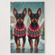 This festive design captures the joyful spirit of the holiday season, featuring an adorable dogs.Nestled in a winter wonderland, complete with a decorated Christmas tree, and beautifully wrapped presents. Snowflakes gently fall, adding a magical touch to the scene, while the vibrant colors of the holiday decorations create a warm and cheerful atmosphere.