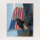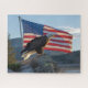 Quebra-cabeça Águia Balda Patriótica em frente à bandeira Americ