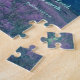 Um gabarito viu o quebra-cabeça com uma imagem de um Mountain View com um subtítulo do 121:1 & de 2 dos salmos impressa nele.