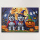 Quebra-cabeça Alaskan Malamute Dogs Pumpkin Halloween Engraçado