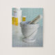 AssetID: sb10065856n-001 / {Seth Joel} / Mortar e martelo, garrafas de pílula em segundo plano