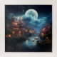 Aldeia Riverside na quebra-cabeça de serra de Lua. © Jigsen Wonderland em Zazzle. Uma vila ao estilo asiático na beira do rio sob o luar.