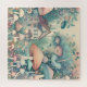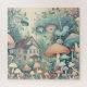 Uma arte aquática que retrata um cheio caseiro ou árvores, cogumelos e uma casinha.