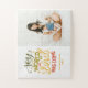 Quebra-cabeça de "Joy to the world the Lord's come", foto religiosa de Natal, em verde-amarelo, vermelho, para o feriado de inverno.