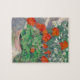 Um presente ideal para um entusiasta do quebra-cabeça, este quebra-cabeça de quebra-cabeça tem uma imagem colorida de um pote de gerânios vermelhos escarlate, de uma pintura original de um pastel de petróleo por Judy Adamson.