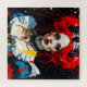 Imaginando Alice como a fantasia da Rainha Vermelha IA gerou arte nas cores vermelha, azul, amarela, preta e branca com cinzas de tinta.