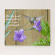 Quebra-cabeça Floral com Bíblia Verse sobre a Força de Deus; Ruby Throated Hummingbird alimentando-se da flor mexicana da Petunia. "Mas o Senhor ficou comigo e me deu força"; 2 Timothy 4:17
