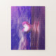 Quebra-cabeça de serra com minha trabalho de arte de 3d de um coração rosa brilhante flutuando em águas refletoras.