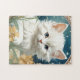 Quebra-cabeça com um gatinho no estilo Art Nouveau de Alphonse Mucha! Um gatinho branco e fofo com poses azuis com flores amarelas. Um presente bonito para amantes de gatos e colecionadores de Art Nouveau!