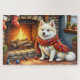 Quebra-cabeça American Eskimo Fireplace with Christmas Lights