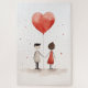 Uma ilustração minimalista e emocionante de um casal de mãos dadas, conectado por um balão vermelho em forma de coração que flutua sobre elas. A simples design, textura aquosa, e maleáveis manchas de cor em um fundo branco dão uma sensação suave e sonhadora ao trabalho de arte, simbolizando amor e união de uma forma pura e inocente.