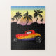 Ancienne voiture hot rod avec comme paysage un coucher de soleil et ces palmiers