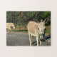 Brown Donkeys Animal Pets Fun Jigsaw Quebra-cabeça tem uma foto de dois burros andando na rua da Rua. Croix US Virgin Islands. Aproveite montar tudo. Fotografia de Denise Bennerson, fotógrafa