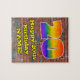 Esta excitante e divertida arte urbana de rua e o design de quebra-cabeça de grafite de de aniversário, tema de aniversário, apresenta um grande número "20", tendo um padrão colorido inspirado no espectro do arco-íris. Ele também apresenta a mensagem "Feliz 20 Aniversário", e um nome personalizado. O fundo apresenta um padrão de parede de tijolos. Um quebra-cabeça de aniversário colorido e personalizado como este pode ser uma maneira divertida de enviar alguns votos de aniversário a alguém que comemora seu vigésimo aniversário. [~Z0000545]
