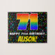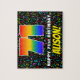 Este alegre e atraente design de quebra-cabeça temático de aniversário apresenta um grande número "71" com um padrão de gradiente inspirado no espectro multicolorido do arco-íris. Também apresenta a mensagem "FELIZ ANIVERSÁRIO DE 71 ANOS," e um nome de destinatário personalizável. O fundo apresenta um padrão divertido de símbolos musicais de várias cores e tamanhos. Um quebra-cabeça de aniversário animado e personalizável como este pode ser usado para celebrar o aniversário de setenta e um anos de alguém. Estes podem ser especialmente especiais se essa pessoa for compositor, músico, cantor, compositor ou amante de música.