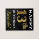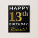 Quebra-cabeça Aniversário do 13 Dourado preto, preto + nome pers