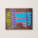 Este design de quebra-cabeça de aniversário divertido apresenta a mensagem "FELIZ 81RUAS ANIVERSÁRIO", tendo uma aparência vibrante, colorida e inspirada no grafite, além de um nome de destinatário personalizável. O plano de fundo apresenta um padrão inspirado pela aparência de uma parede de tijolos. Uma quebra-cabeça de aniversário divertida e personalizada como esta pode ser uma maneira divertida de entregar uma mensagem de saudação de aniversário a alguém que está celebrando seu oitenta e primeiro aniversário. [~Z0000532]