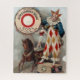 Anúncio venenoso para a soda Arm & Hammer, mostrando um palhaço e um acrobat em um cavalo, por volta de 1900.