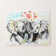 Quebra-cabeça Aquarela - Elefantes Cutos - Corações Românticos