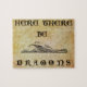Um velho aviso sobre um pergaminho antigo ilustrado com um grande dragão alado; diretamente de um bestiário medieval ou de um conto de fadas. Um dragão de fantasia temia quebra-cabeça de quebra-cabeça para manter todos entretidos.