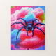 Esta imagem inspirada no carnaval assustadora tem uma aranha assustadora aninhada entre os tons vibrantes de algodão doce. Mistura bonito e assustadora! (IA gerado)