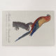 Esta ilustração apresenta um macho de Aratinga solstitialis de cores brilhantes, renderizado num estilo clássico de história natural reminiscente das primeiras obras ornitológicas. A ave é mostrada empoleirada num ramo texturizado, sua postura calma, mas alerta. Sua plumagem irradia com tons intensos - laranja ardente na face e no peito, misturando-se ao amarelo dourado ao longo do corpo, e contrastado por penas de voo verde e azul profundas. A composição e o detalhamento fino refletem a influência de Jacques Barraband, cujo trabalho na documentação de aves exóticas combinou precisão científica com elegância artística. A inscrição "Perruche Ara, Guarouba mâle" liga ainda mais a imagem às interpretações históricas europeias de papagaios sul-americanos.