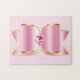 Um quebra-cabeça com um arco brilhante brilhante, com contorno de ouro e uma pedra-pomes rosa facetada no centro. Estilo de luxo feminino.