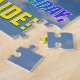 Este design de quebra-cabeça de aniversário atraente, vibrante e divertido apresenta um céu azul com um fundo de nuvens, um grande número "15" e "FELIZ BIRTHDAY", ambos tendo um espectro multicolor de arco-íris inspirado em gradiente e um nome personalizado. Um quebra-cabeça de aniversário colorido, carinhoso e personalizado como este pode ser uma maneira divertida de enviar uma mensagem em comemoração do 15 aniversário de alguém. [~Z0000375]