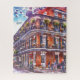 Nova Orleans Watercolor com Feliz Céu Azul, Sol e Arquitetura Clássica. Nola pessoas rolando e andando de bicicleta com música jazz ecoando no ar legal.