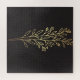 Conjunto de arte de ouro de luxo Elementos geométricos e de linhas, folhas de ouro, ramos, flores, ilustração mural de arte minimalista com plantas lineares sobre fundo negro
