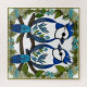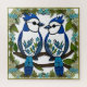 Arte colorida em papel representando dois jays azuis tocados em um galho, encapsulados em um quadro decorativo. A design mostra um intricado artesanato, matizes vibrantes e detalhes harmoniosos evocando a beleza e a criatividade da natureza.