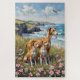 Uma cena graciosa da família Greyhound ambientada ao longo de um prado costeiro ventoso. Com um cão adulto elegante e dois filhotes adoráveis, esta obra de arte captura movimento, calma e beleza natural—perfeita para amantes de cães e decoração costeira.