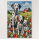 Uma vibrante cena de família dálmata ambientada em um colorido prado de papoulas. Com um cão adulto orgulhoso e dois adoráveis filhotes, esta obra de arte captura energia, contraste e beleza natural - perfeita para amantes de cães e decoração brilhante.